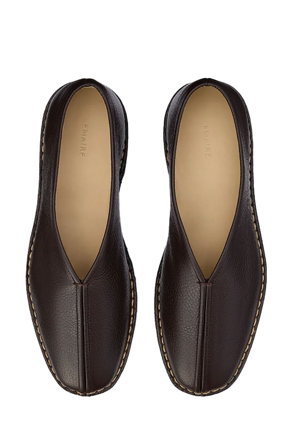 • Classic shape is achieved by a simple construction of two leather pieces sewn together at the front and sealed with leather piping