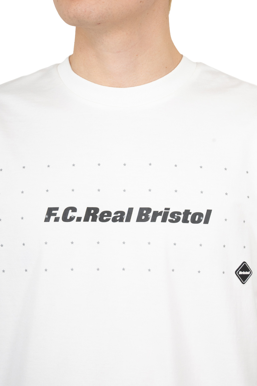 • A short-sleeve T-shirt adorned with 54 stars representing the footsteps of F.C.Real Bristol, layered behind the brand’s most iconic logo