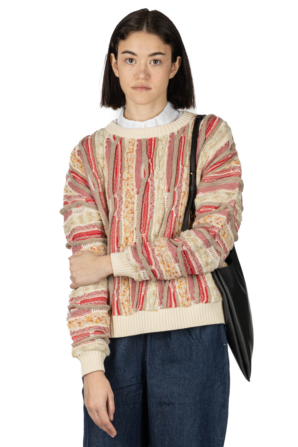Marble Wave Crew Neck Knit - Red